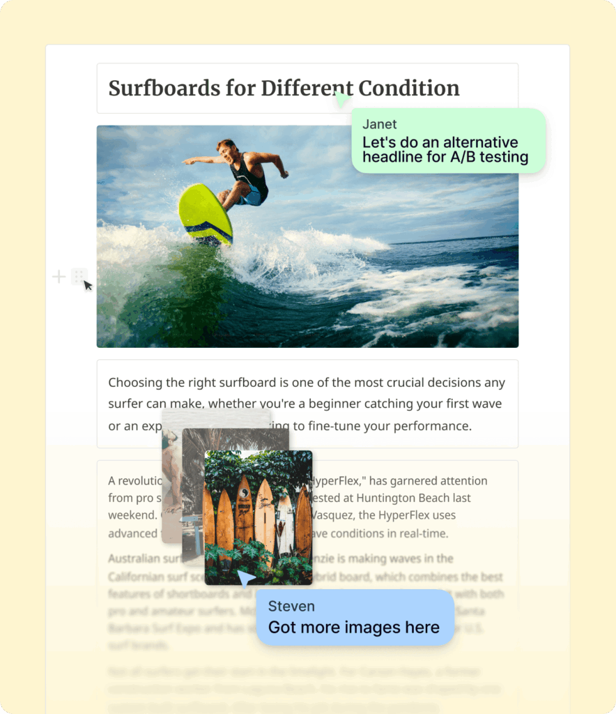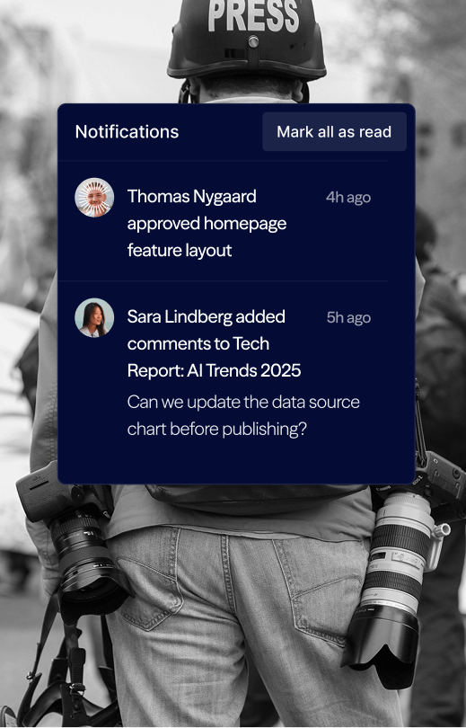 Consistency across every channel. Shared structures, assets, and templates keep your team aligned on editorial standards, and brand coherency, no matter where the story travels.