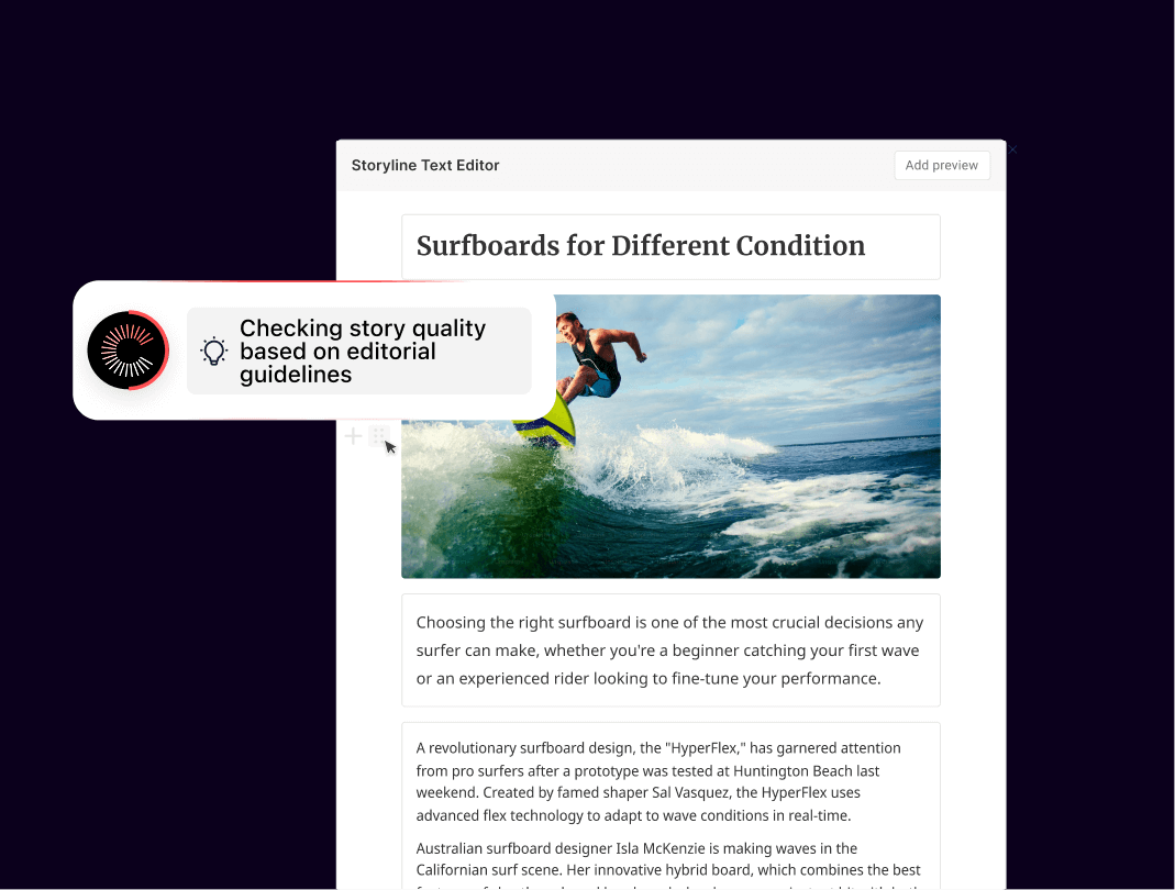 Support creativity, readability and audience relevance. Use automation and AI to enhance the quality and impact of stories as they are created, without sacrificing editorial integrity.