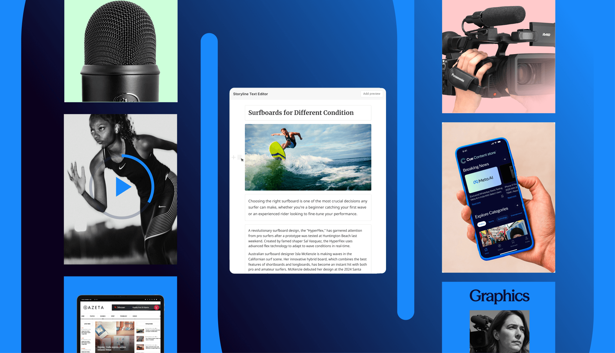 Meanwhile, Cue adapts and scales to the evolving needs, amplifying content output across all channels. Watch your teams experience improved efficiency and empowered content creation designed for the multimedia hybrids of tomorrow.